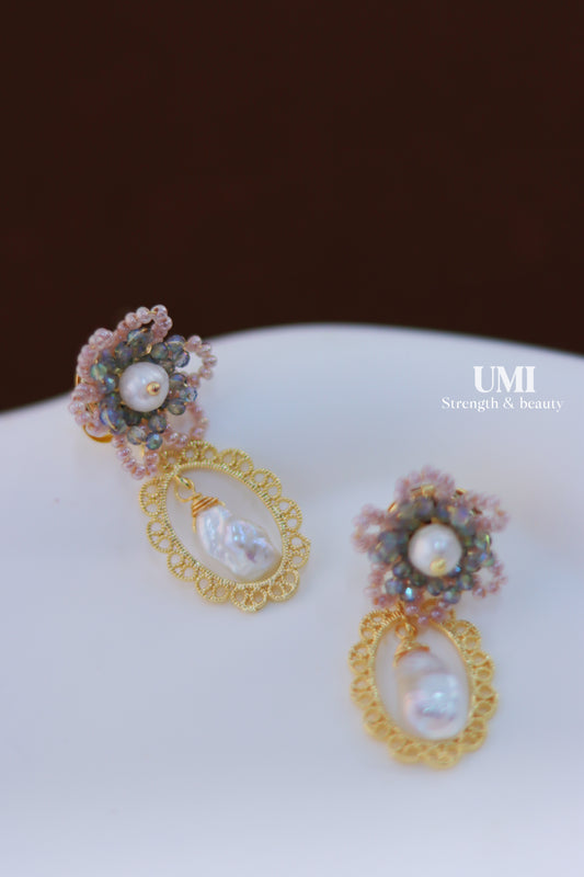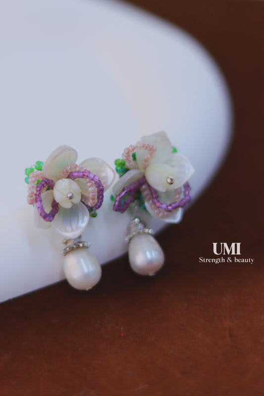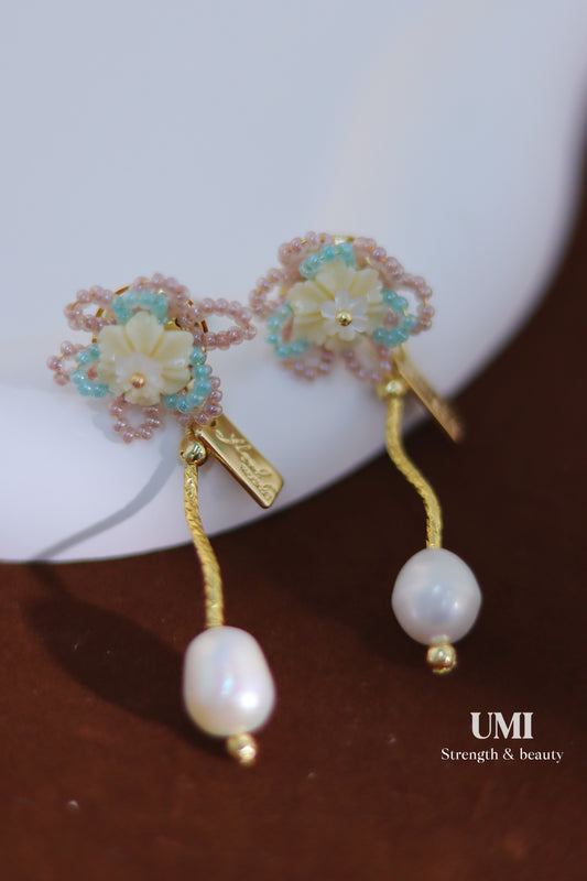 Beaded Flower Pearl Drop Earrings