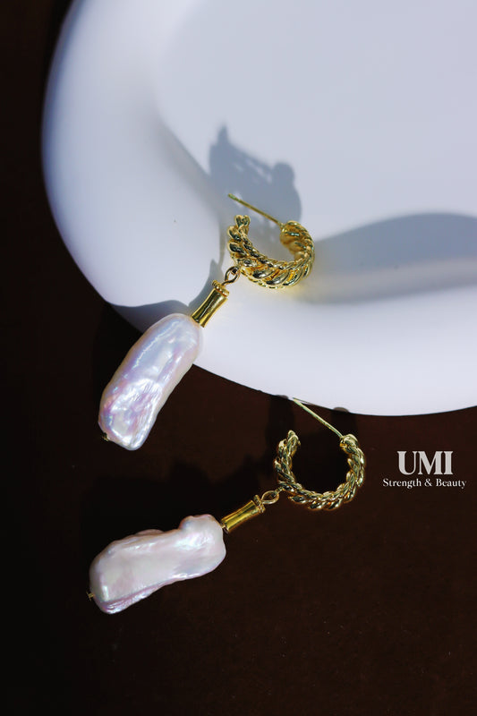 Freshwater Long Pearl Huggie Earrings